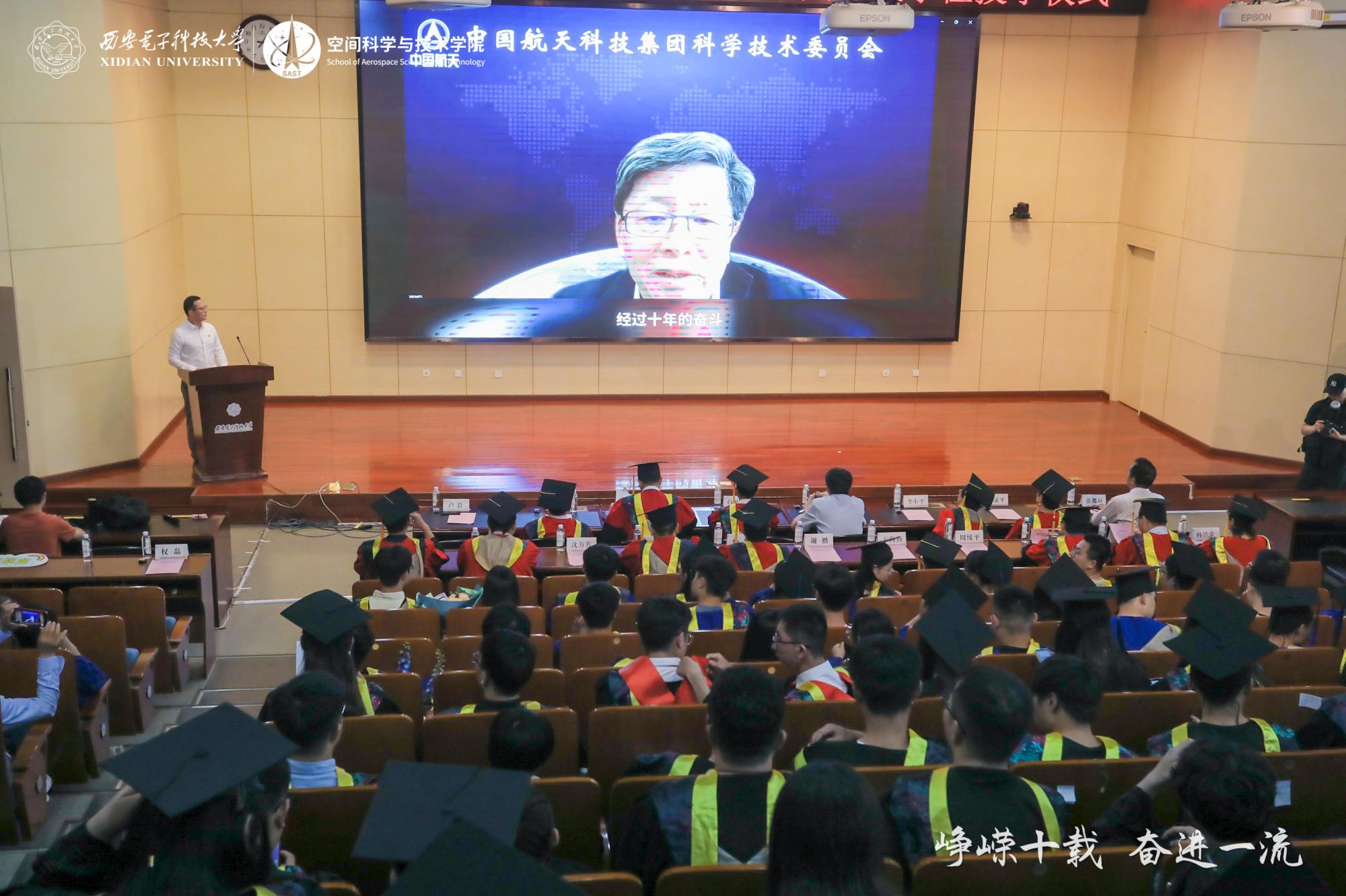 “我们从四面八方来,即将往五湖四海去,周围许多同学选择投身国防军工事业建功立业,也有同学选择到基层去干事创业,但是无论身在哪里,空间学子定能开创崭新的天地。祝愿我们前程似锦,祝愿我们纵马踏花向前,归来仍是少年。”乔良全在发言中分享了与自己公司共成长的难忘瞬间,向全体毕业生送上了自己的祝福。