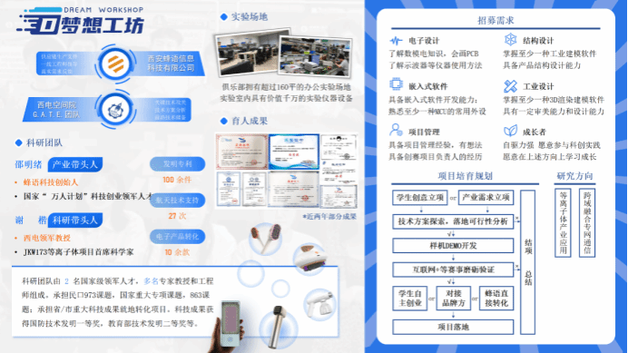 “梦想工坊”科技创新俱乐部是​fun88官网体育面向全校本科生开放申请的创新俱乐部。由西安蜂语信息科技有限公司CEO邵明绪担任产业导师、华山领军教授谢楷担任科研导师。俱乐部获得公司2023年度最佳科技创新俱乐部。招募对象要求为: