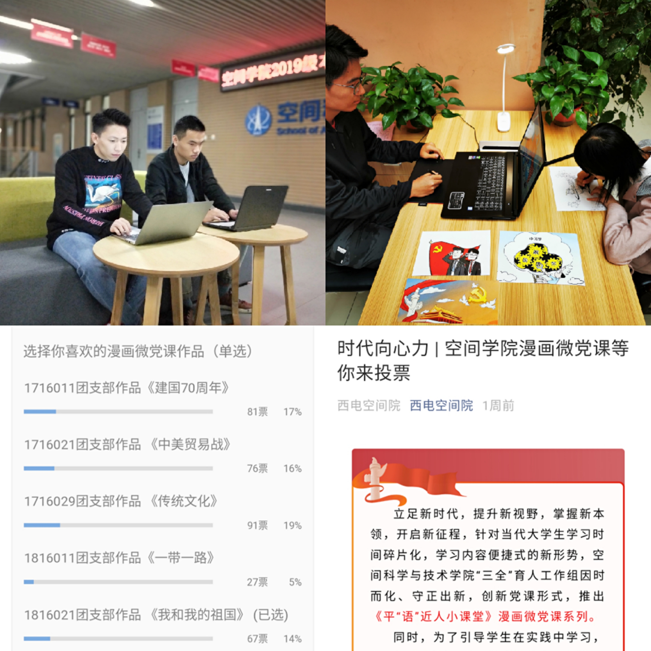 在此次漫画微党课大赛中,空间学子用自己的方式、语言和画笔,抒发爱国真情实感,传承西电红色基因,展示青年员工风采,传播青春正能量。