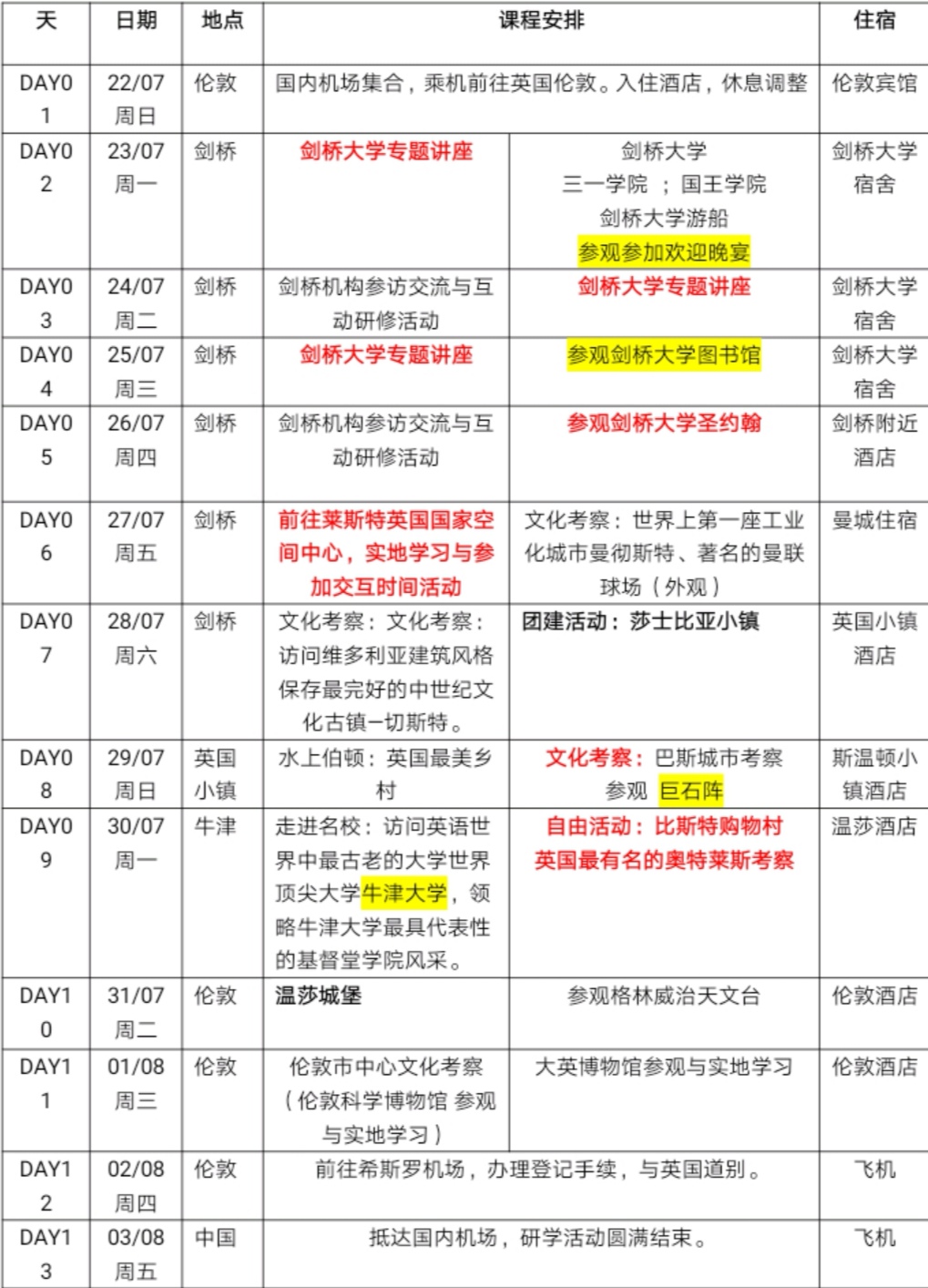 游学方案: