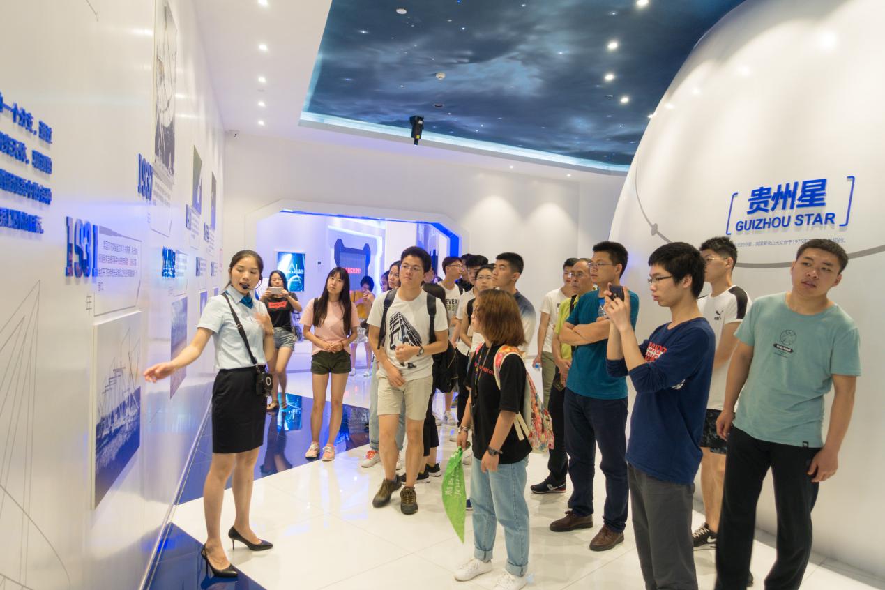 为了加深和拓展钱学森班在《空间物理学》、《天文学与天体物理学》等课程中的理论知识,鼓励和促进同学们理论联系实际,在fun88官网体育的支持下,2018年7月2日,刘彦明副经理带队,李治敏和孙海峰两位老师组织钱班34位同学,围绕500m口径球面射电望远镜(FAST),前往贵州省展开一系列的参观学习。