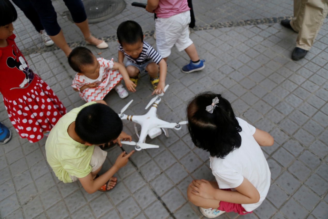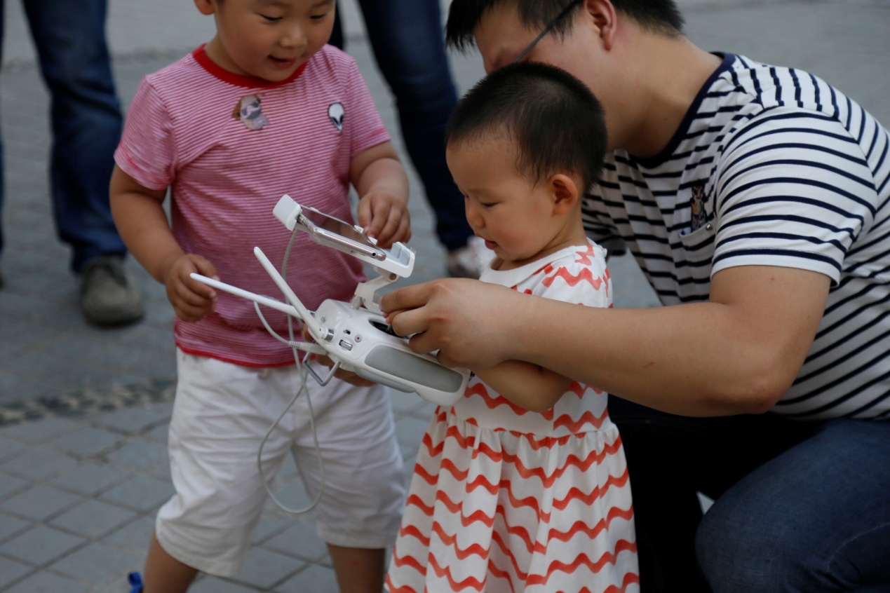随后家长与小朋友们在公司无人俱乐部同学们的带领下,共同体验了无人机飞控。