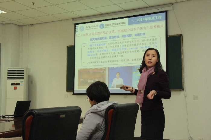 李小平教授首先对公司2014年一年的工作进行了总结,从发展规划和团队建设、员工培养和教师队伍、科研工作和科学实验平台、文化与环境建设等方面进行了简要汇报。她说,2014是公司创立之后的第一个完整年,在全体教师员工共同努力下,公司工作取得了长足进展:公司不断探索创新人才培养新模式;“钱学森空间科学实验班“正式揭牌;深化研究生教育综合改革,突出校所联合、工程问题驱动的培养模式;激励、引导与打造一支高水平教学科研团队;科学规划公司特色发展,“西电一号”微小卫星开启系统工程能力建设;增强科研创新实力,973重大项目开局良好;重基础强实践,打造多层次实验教学研究平台;加强公司文化氛围建设,打造良好学术环境等。李小平教授对2015年公司重点工作进行了计划。她表示,2015年是关键的一年,面对新的发展形势、要科学规划,抓住机遇、团结协作,努力奋斗!