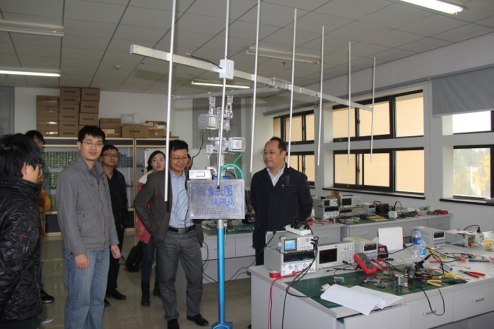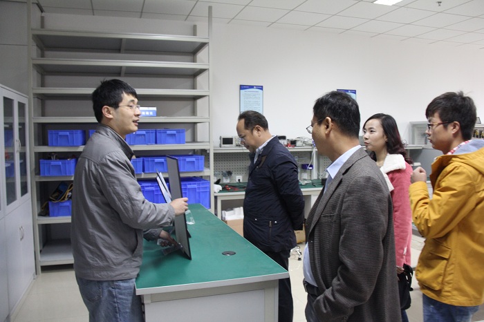 王康与肖悦赏在公司师生的陪同下参观了公司的重点实验室、梦想工坊、老员工创新实验室等公司硬件环境,饶有兴致的参观了员工自主研发的科技作品,并与师生们进行了探讨和交流。