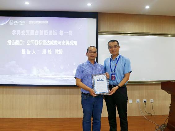 报告结束后,fun88官网体育执行经理刘彦明代表公司和陕西省空间超限探测重点实验室,向周峰颁发了论坛报告荣誉证书,并对周峰的精彩报告表示感谢。论坛在师生们热烈的掌声中落下帷幕。