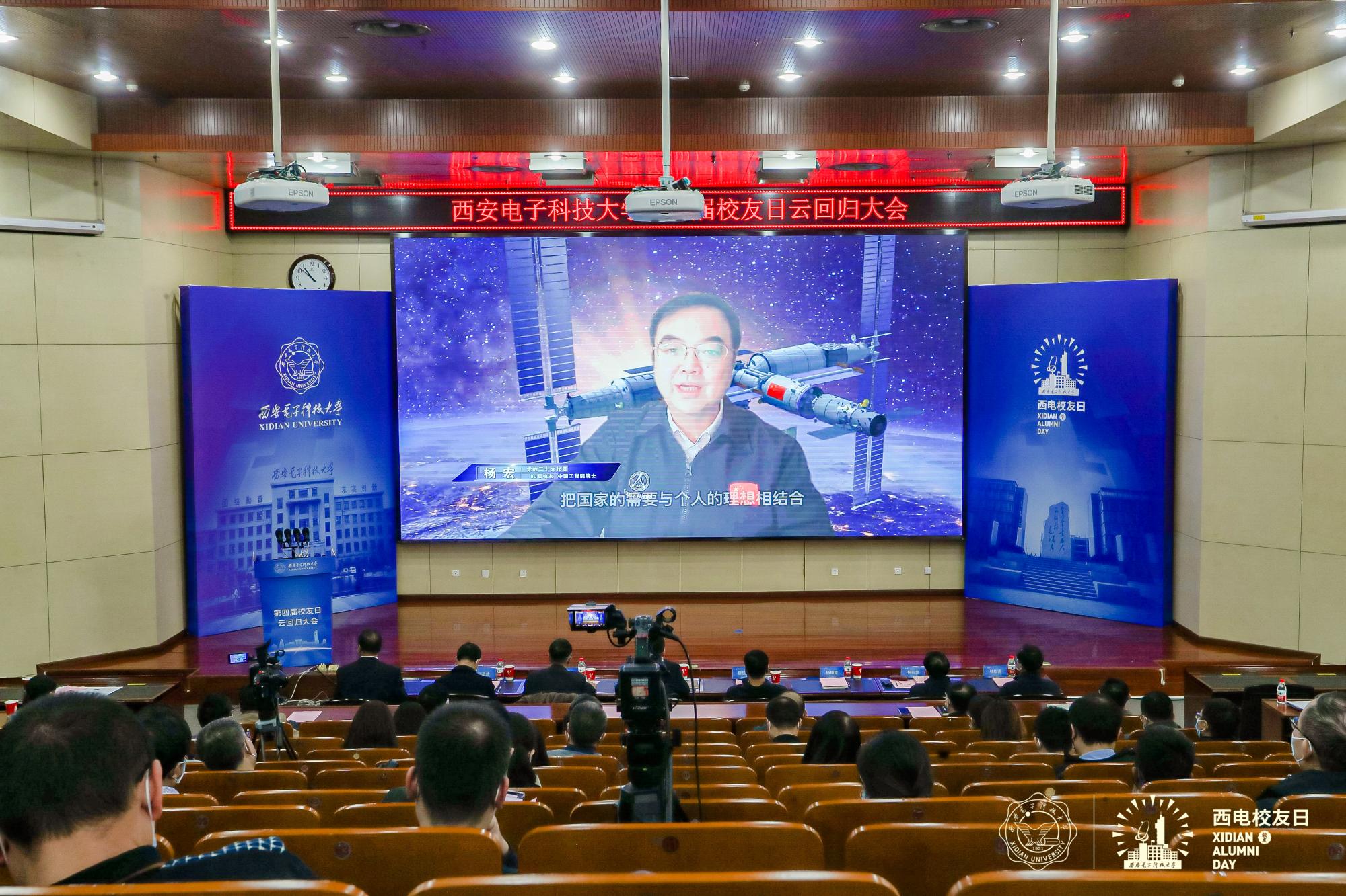 1980级员工、中国载人航天工程空间站系统总设计师、党的二十大代表杨宏院士通过视频发表了致辞。他结合自身经历分享了成长成才的感悟,一是以强国建设为目标,坚持四个面向,把国家需要与个人理想相结合,为中华民族伟大复兴做出应有的贡献;二是空谈误国,实干兴邦,坚持瞄准前沿,脚踏实地、刻苦攻关,耐得住寂寞,坐得了“冷板凳”,提升自己分析问题和解决问题的能力;三是培养良好的系统性思维方式,有意识的成为复合型人才,拓宽知识面,树立前瞻性思维和国际视野,增强自身的系统科学意识。