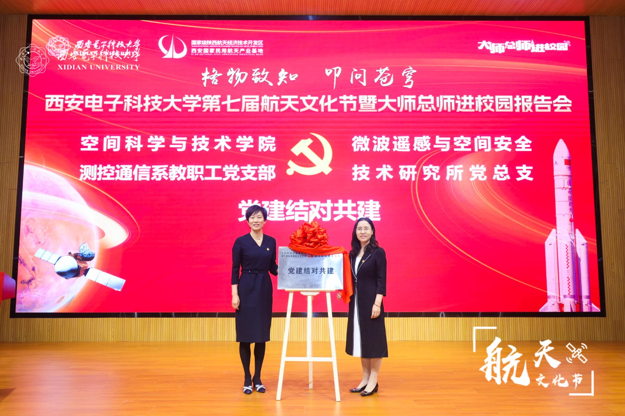 航天科技集团五院西安分院微波遥感与空间安全技术研究所党总支书记杨莉研究员与fun88官网体育测控通信系教职工党支部书记李小平教授共同为“党建结对共建”揭牌。