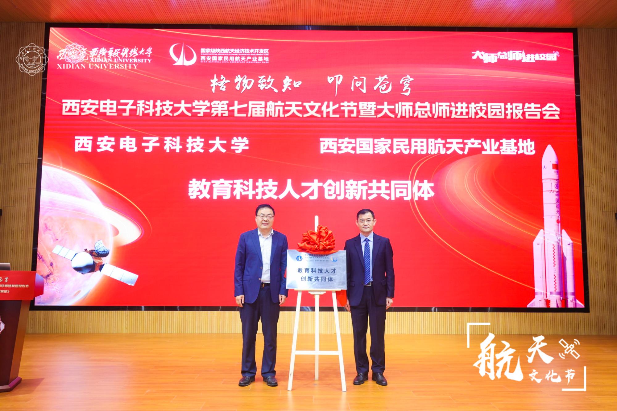 仪式上,为加强西电fun88官网体育与西安航天基地合作,推动创新链和产业链深度融合,刘宏伟与田欣共同为“教育科技人才创新共同体”揭牌。