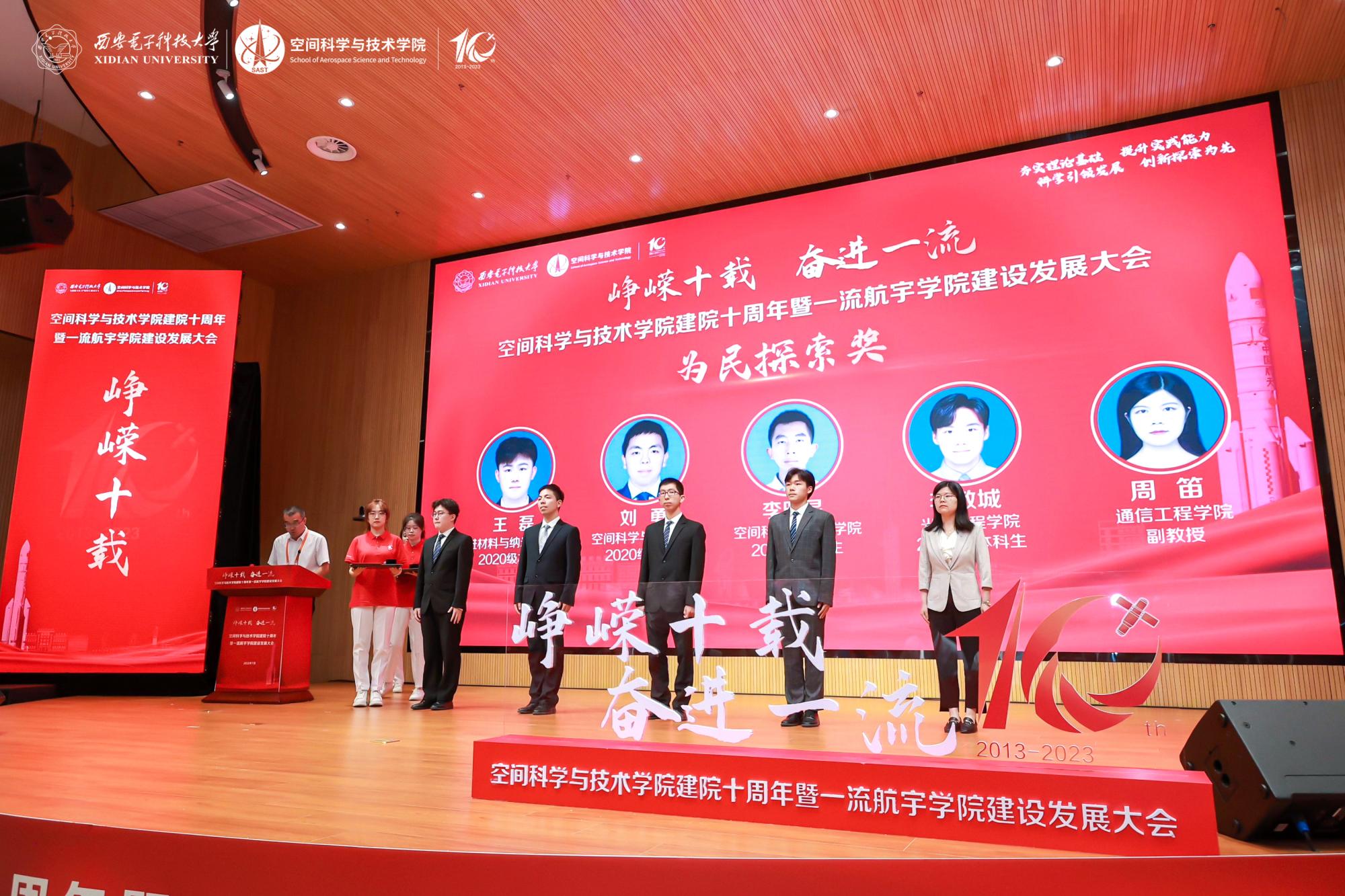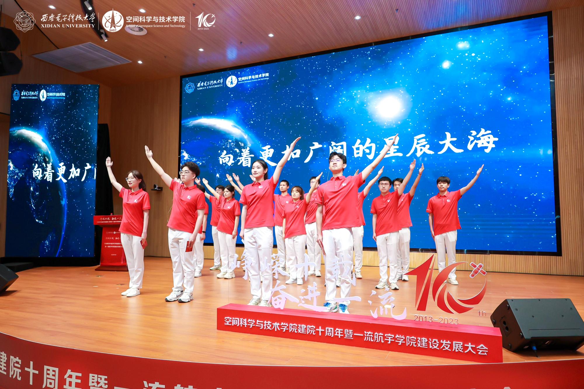 “赓续红色基因,矢志航天报国,空间青年已经背起行囊,向着下一个十年整装起航,在逐梦太空的征途上发出青春的夺目光彩。”大会上,空间学子带来《向着更加广阔的星辰大海》朗诵,用铿锵有力的誓言向中国航天致敬,许下空间学子的青春诺言。