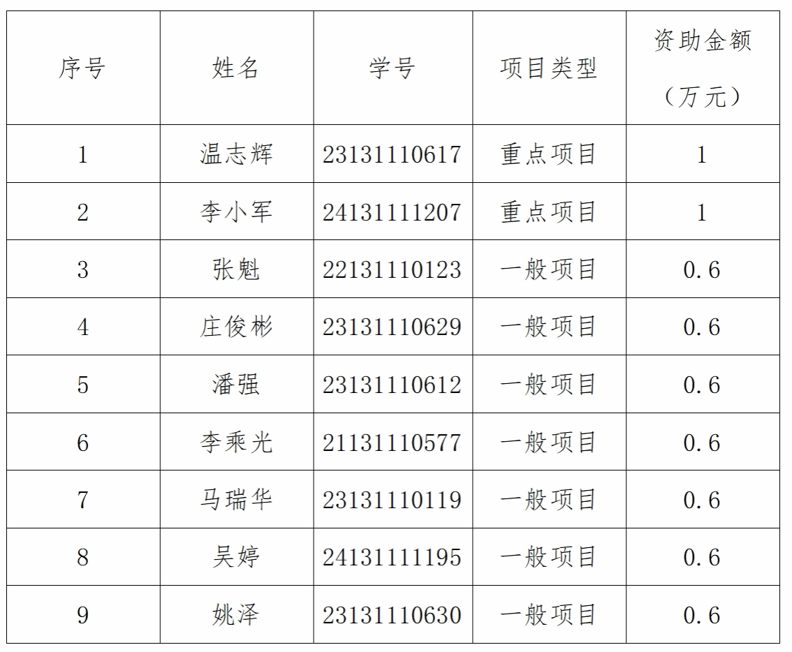 经个人申报、公司组织专家评审等流程,确定资助项目9项,详见下表: