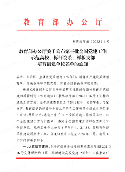 近日,第三批全国党建工作示范高校、标杆院系、样板支部培育创建单位名单公布,fun88官网体育测控通信系教职工党支部入选全国党建工作样板支部培育创建单位。