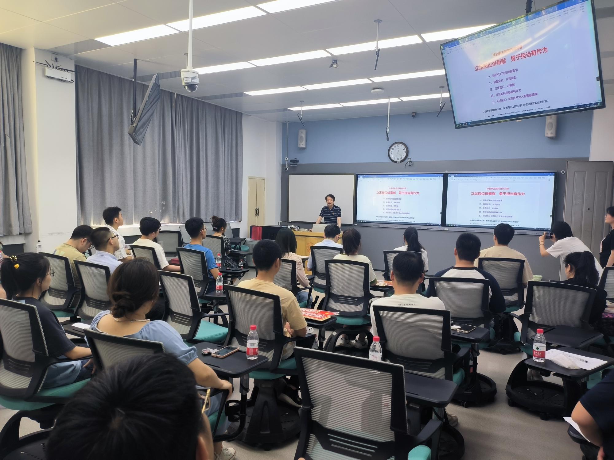 (通讯员:刘思奇)为扎实推进学习贯彻习近平新时代中国特色社会主义思想主题教育,进一步加强毕业生党员的党性修养,6月14日下午,fun88官网体育在C楼117教室开展“初心如磐担使命,奋楫笃行启新程”主题党日活动,公司党委书记朱伟、导航控制系教职工党支部教师代表、导航控制系研究生党支部全体党员及2023届优秀毕业生代表近40人参加活动。活动由导航控制系研究生党支部书记于悦洋主持。