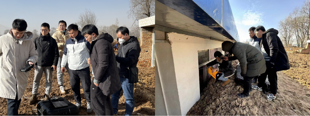 由于民和县还有多名压埋人员未获救,程鹏飞副教授和团队成员首先赶到了发生地震和砂涌灾害的青海省民和县救援现场,积极开展搜救技术服务工作。在“埋压人员痕量气体标记物探测技术装备”的支持下,他们进入灾后的复杂地形,通过人体痕量气体标记物探测装备为崩塌现场进行“体检”,获取地表及不同深度的详细气体信息,协助青海省救援总队开展探测地下生命活体体征的救援工作。次日晚上,团队又火速赶往甘肃省临夏州积石山县,在震后救援现场,记录下了大量珍贵的灾后复杂环境下含水土质、地壳及房屋等密闭空间气体关键信息,为设备后续的研发和完善工作积累了宝贵的数据。